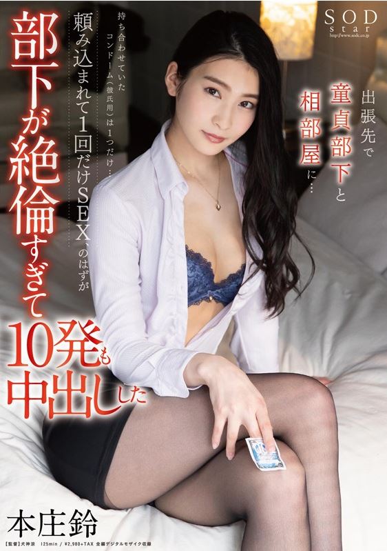 本庄鈴 出張先で童貞部下と相部屋に…持ち合わせていたコンドーム(彼氏用)は1つだけ…頼み込まれて1回だけSEX、のはずが部下が絶倫すぎて10発も中出しした